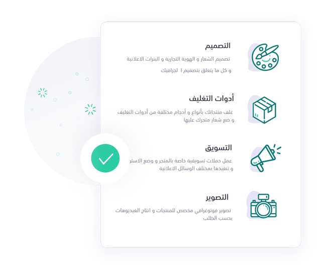 من خلال شُركائنا وفّرنا للتاجر نخبة من أفضل مقدمي الخدمات و بسعر خاص ( تصميم الجرافيك, التصوير , ادوات التغليف , التسويق ... )